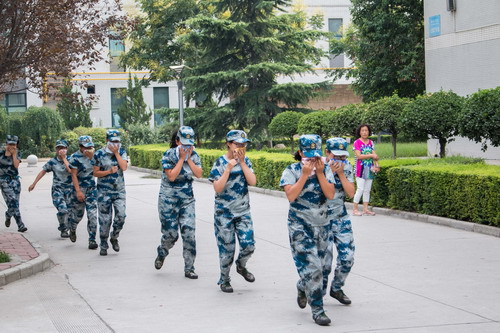 军训期间为了让学员们增强安全意识,了解逃生知识,掌握一定的逃生技能。军训团会同保卫部邀请凤城六路消防队消防战士和武警官兵在8月30日下午四点举行了逃生演练,全体军训学生参加了此次演练。