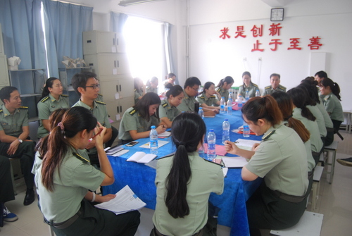 8月21日上午,2017级学生军训动员大会刚刚结束,军训团召团部干部及指导员工作会。军训团政委张学堂主持会议。