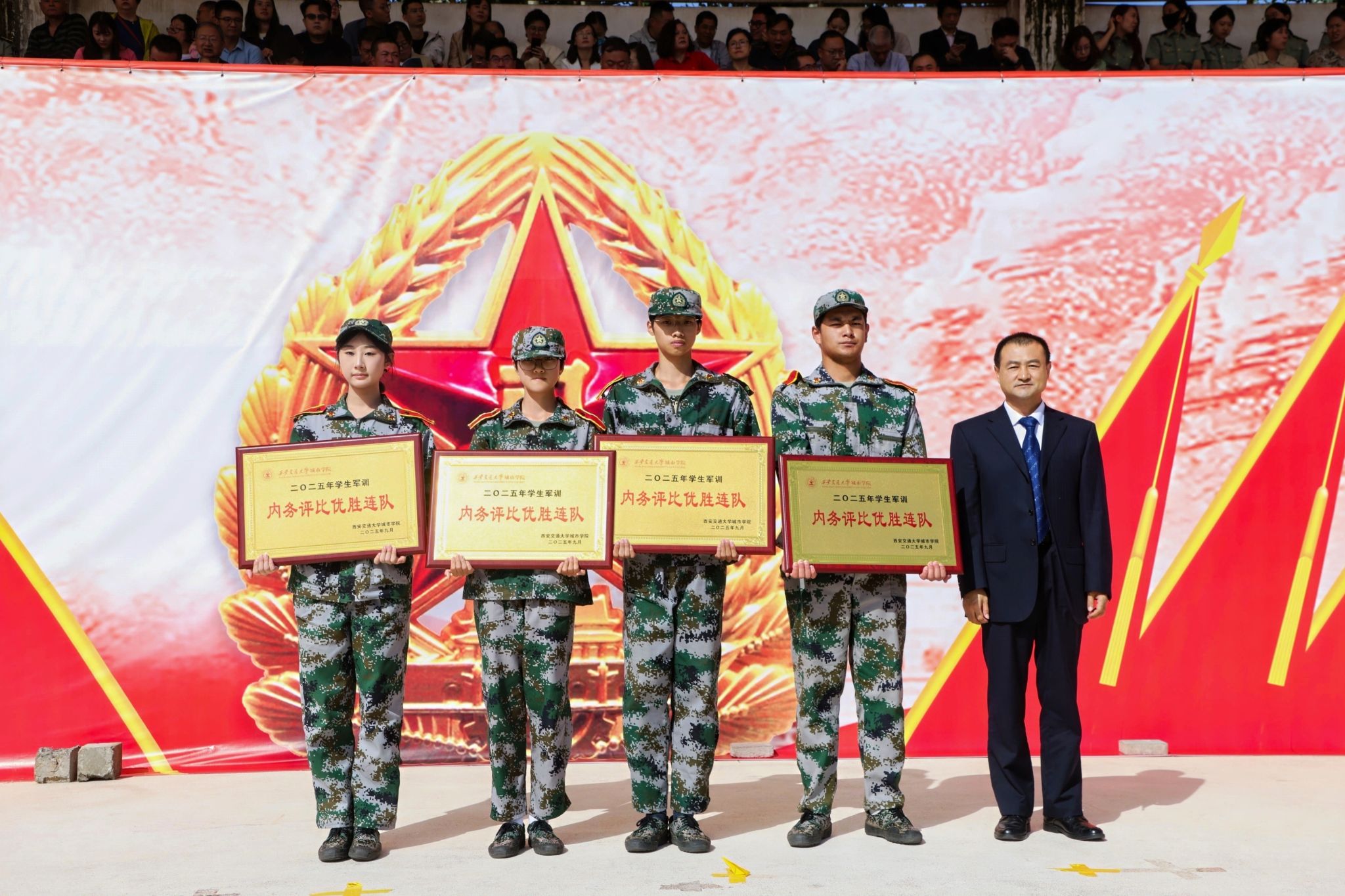 汇演结束后,严红昌书记宣读军训表彰决定,学校领导为优秀连队、优秀教官、优秀指导员及优秀学员依次颁奖,激励全体人员以先进为榜样。王永泉校长代表学校向承训单位赠送锦旗,向教官们的辛勤付出致以诚挚感谢。