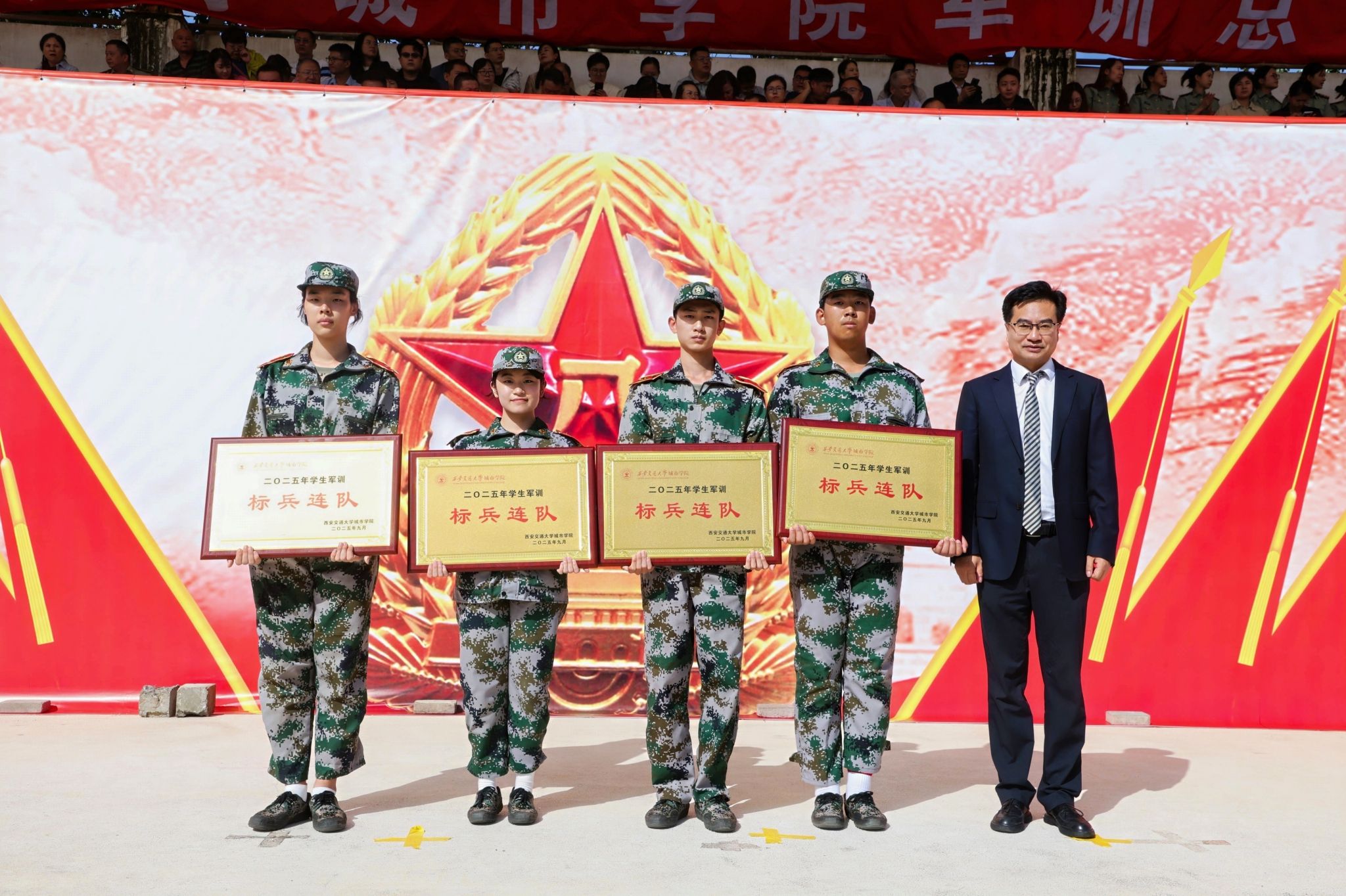 携笔从戎砺青春,秋日沙场验锋芒。9月6日,西安交通大学城市学院召开2025级学生军训总结大会。西安交通大学城市学院校长王永泉,党委书记严红昌,中国人民解放军某部队副参谋长、少校、军训团团长杨毓海,学校党委副书记、副校长陈书荣,副校长朱旭,副校长岳华海,校长助理、行政人事部部长姬志国,校长助理、财务处处长马江涛,各二级学院、部(处)领导、校友代表、部分新生家长、全体军训教官、指导员及军训学员参加了此次军训总结大会。