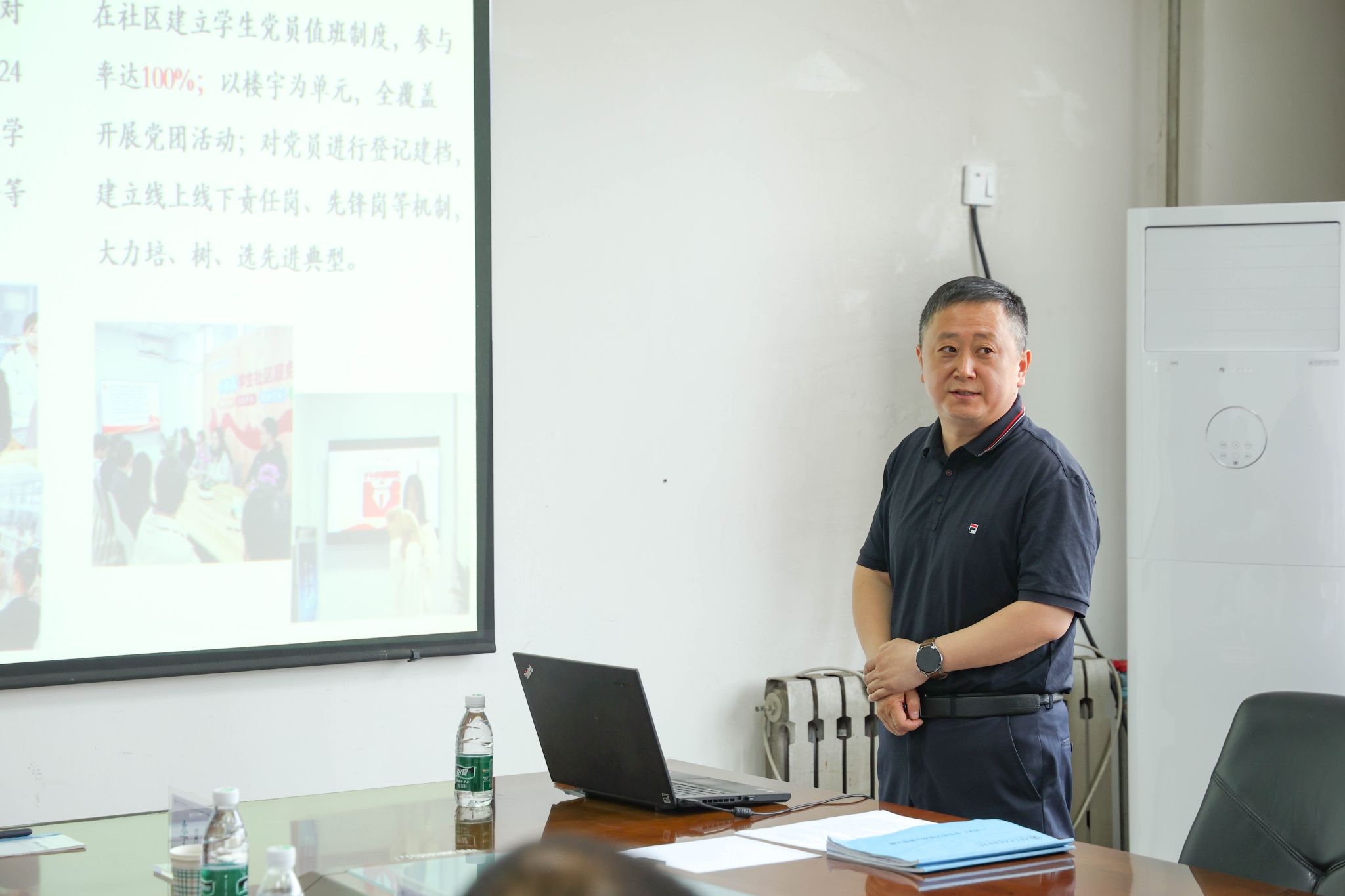 辛红伟处长对我校“一站式”学生社区建设情况作了总体汇报,并着重从党建引领、队伍入驻、学生参与、文化建设、数字赋能、条件保障六个方面进行了详细解读,表示学校将构建“社区+学院”育人共同体,努力打造“融合教育教学、融通育人全程、融汇社区+学院”的“一站式”学生社区育人新生态。