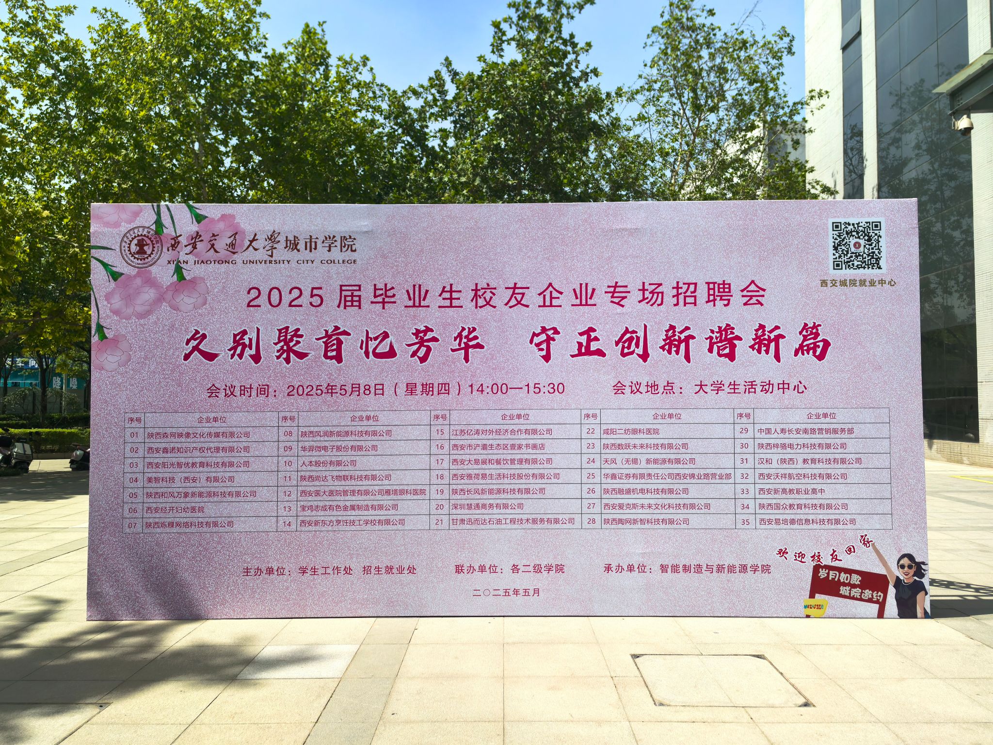 为深入贯彻全国教育大会精神和党中央、国务院关于高校毕业生就业工作决策部署,深度挖掘校友资源潜力,5月8日,“久别聚首忆芳华,守正创新谱新篇”2025届毕业生校友企业专场招聘会在大学生活动中心举办。本场招聘会由招生就业处联合学生工作处主办,各二级学院联办,智能制造与新能源学院承办,共邀请36家企业参会,提供近千个招聘职位,招聘岗位涉及学校开设的所有专业。