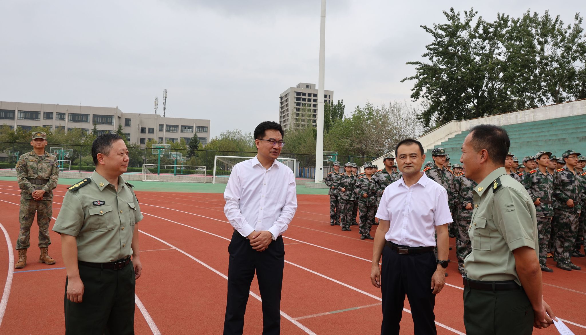 9月3日下午,西安交通大学城市学院校长王永泉,党委书记严红昌,党委副书记、副校长陈书荣,副校长朱旭,副校长岳华海,校长助理、行政人事部部长姬志国,校长助理、财务处处长马江涛及各二级学院、职能部门负责人、各二级学院学生工作负责人来到训练场地,看望慰问2025级全体参训学员以及带训教官、指导员们,并为全体军训成员送上慰问品。