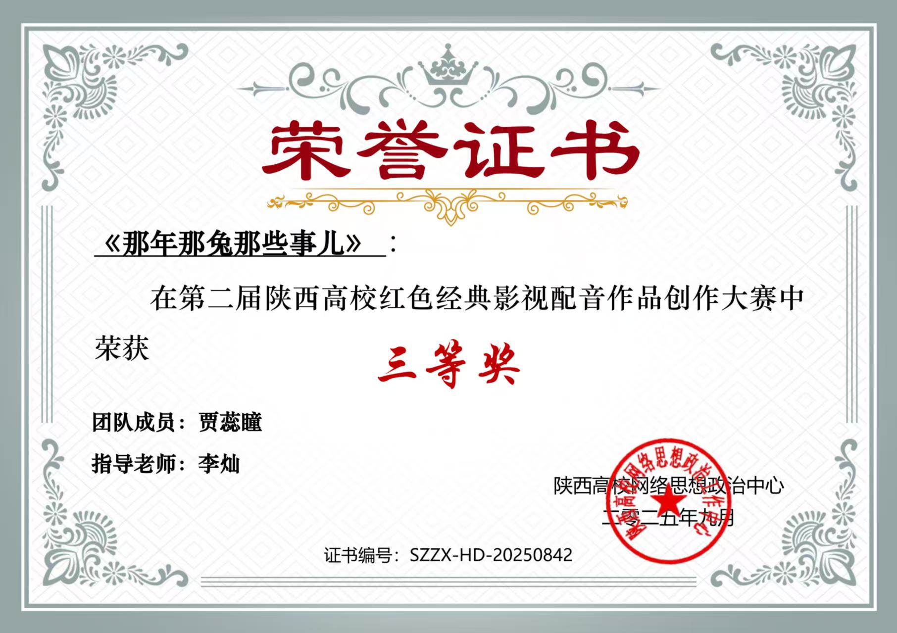 近日,“秦声颂经典,红韵谱华章”第二届陕西高校红色经典影视配音作品创作大赛圆满落幕。西安交通大学城市学院学生以声音为桥传递红色力量,凭借精湛的配音技艺和对红色经典的深刻诠释,在全省高校中脱颖而出,配音作品《辛亥革命》、《那年那兔那些事儿》、《追风者》分别斩获二等奖、三等奖及优秀奖,充分展现了城院学子的青春风采与使命担当。