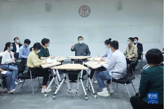 4月25日上午,中共中央总书记、国家主席、中央军委主席习近平来到中国人民大学考察调研。这是习近平同师生代表座谈并发表重要讲话。新华社记者 谢环驰 摄