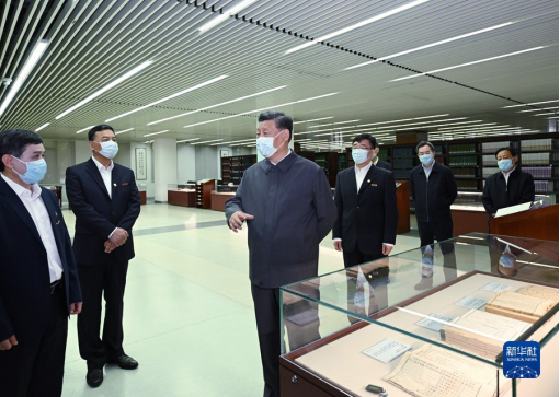 中国人民大学图书馆以人文社会科学学术性文献馆藏为主,有藏书410余万册。习近平来到这里,考察馆藏红色文献、古籍集中展示,察看现代化检索平台和复印报刊资料等数字化学术资源,听取学校加强文献古籍保护利用,促进理论研究成果转化应用等情况介绍。习近平强调,人民大学馆藏红色文献,鉴证了我们党创办正规高等教育的艰辛历程,是十分宝贵的红色记忆,要精心保护好,逐步推进数字化,让更多的人受到教育、得到启迪。要运用现代科技手段加强古籍典藏的保护修复和综合利用,深入挖掘古籍蕴含的哲学思想、人文精神、价值理念、道德规范,推动中华优秀传统文化创造性转化、创新性发展。要加强学术资源库建设,更好发挥学术文献信息传播、搜集、整合、编辑、拓展、共享功能,打造中国特色、世界一流的学术资源信息平台,提升国家文化软实力。